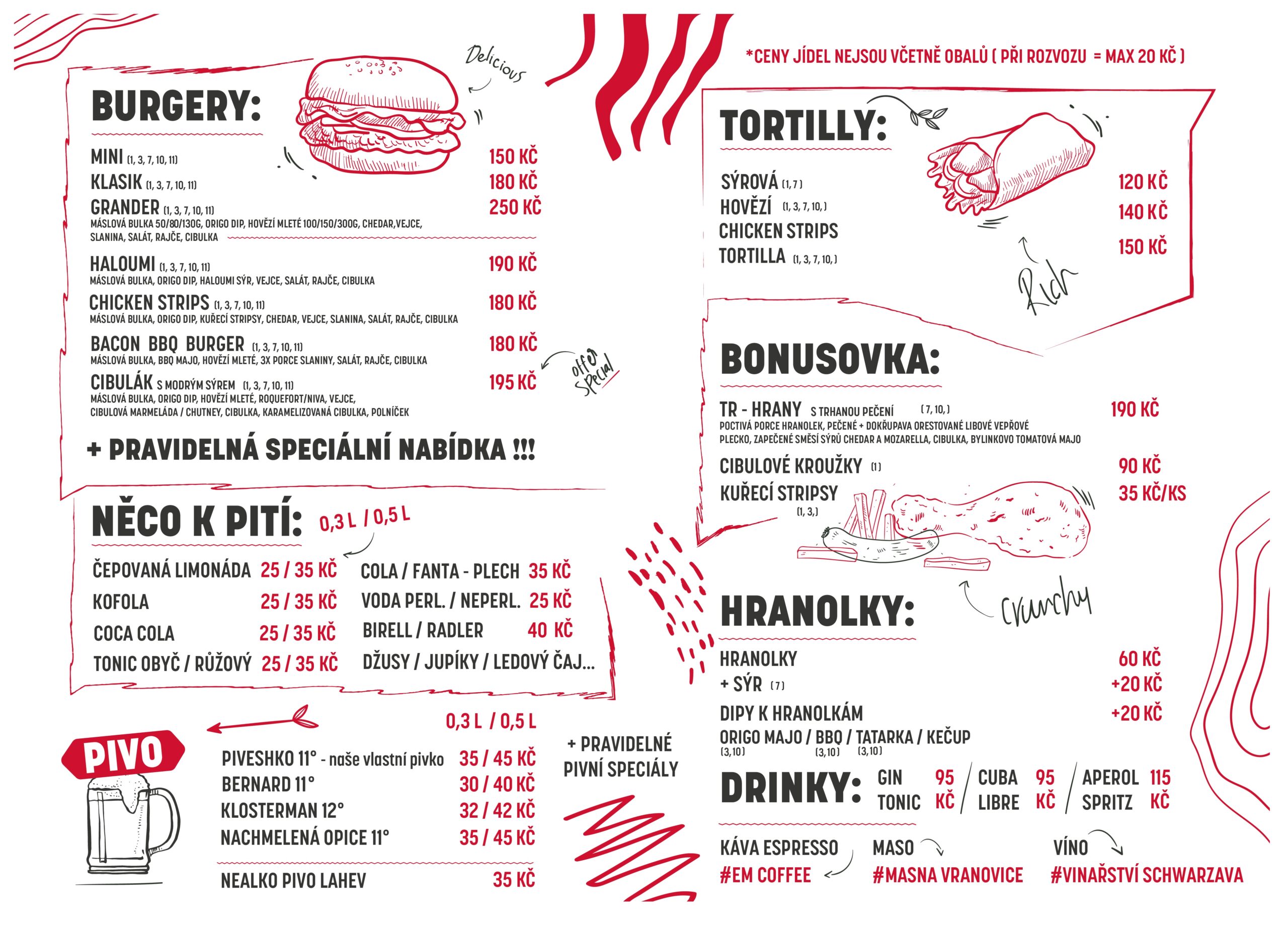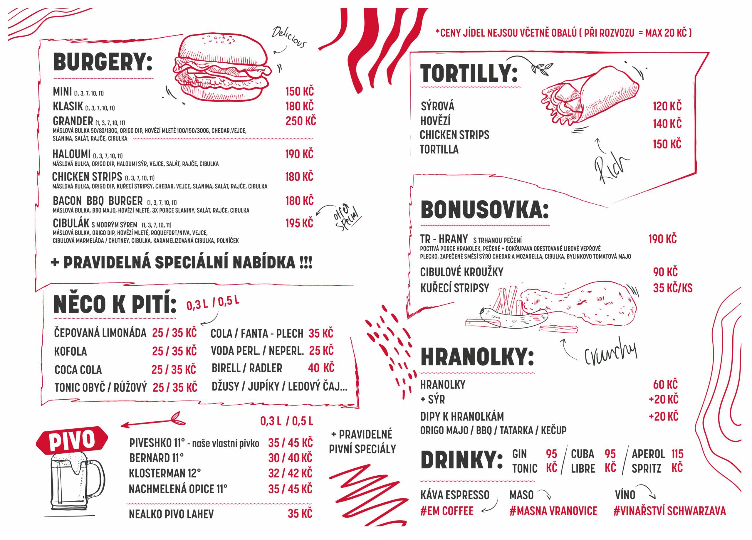 Nápoje + BURGERY a další dobroty z naší kuchyně